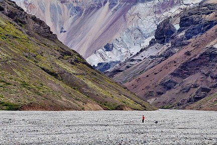 the river bed. The photos show the Kjós valley and Morsárjökull not far from the glacier's outlet. |