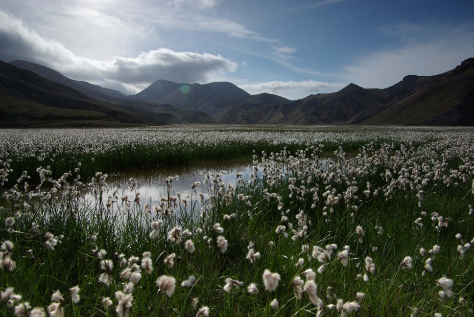 Wollgraswiese im Gebiet Landmannalaugar