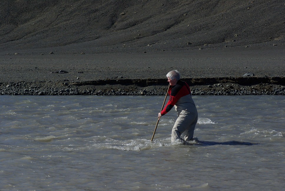 Soffía prüft eine Furt am Kaldakvísl