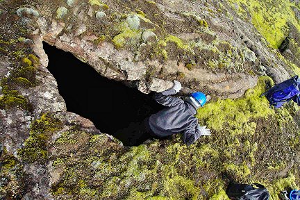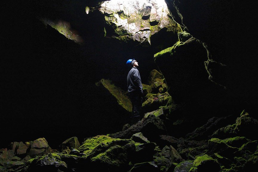 einfach, obwohl es Hunderte von Höhlen im Lavafeld gibt.