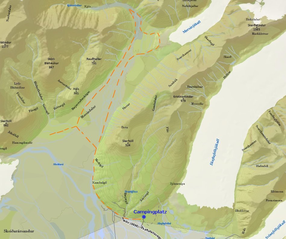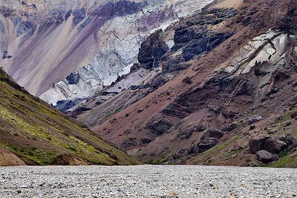 the river bed. The photos show the Kjós valley and Morsárjökull not far from the glacier's outlet. |