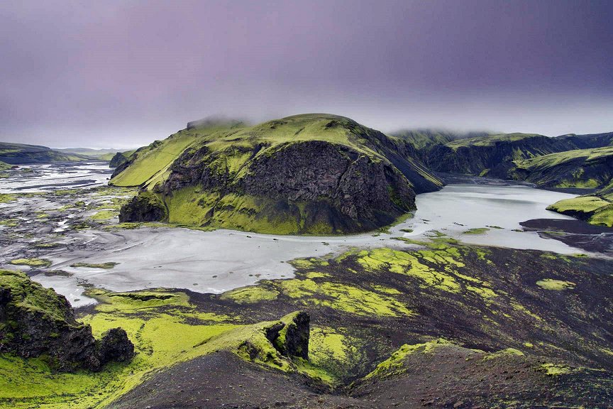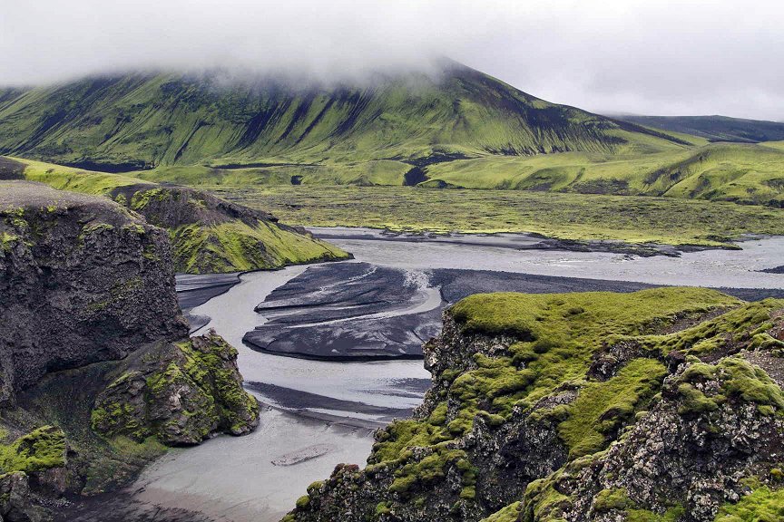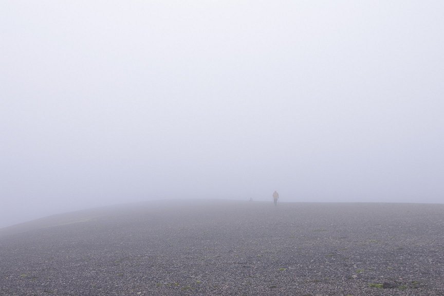 das Hochplateau von unserem Zeltplatz durch anfangs dichten Nebel bis